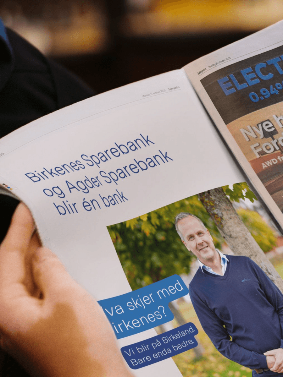 Sparekassa i Arendal og Gjerstad Sparebank slo seg sammen og ble Agder Sparebank. En ny, frittstående visuell identitet måtte fungere sømløst med identiteten til Eika-alliansen som banken er en del av. Identiteten skulle også fungere for videre vekst.