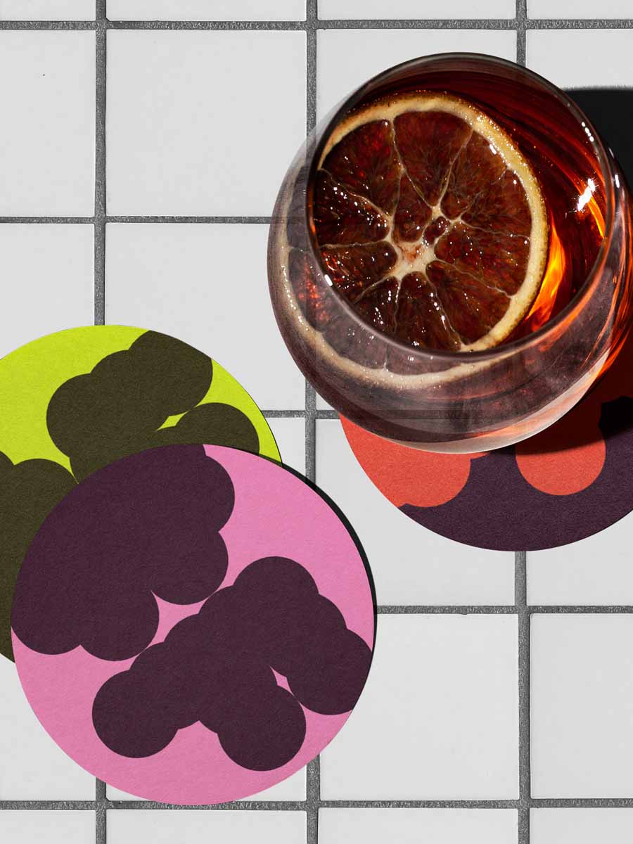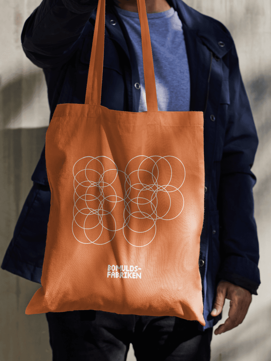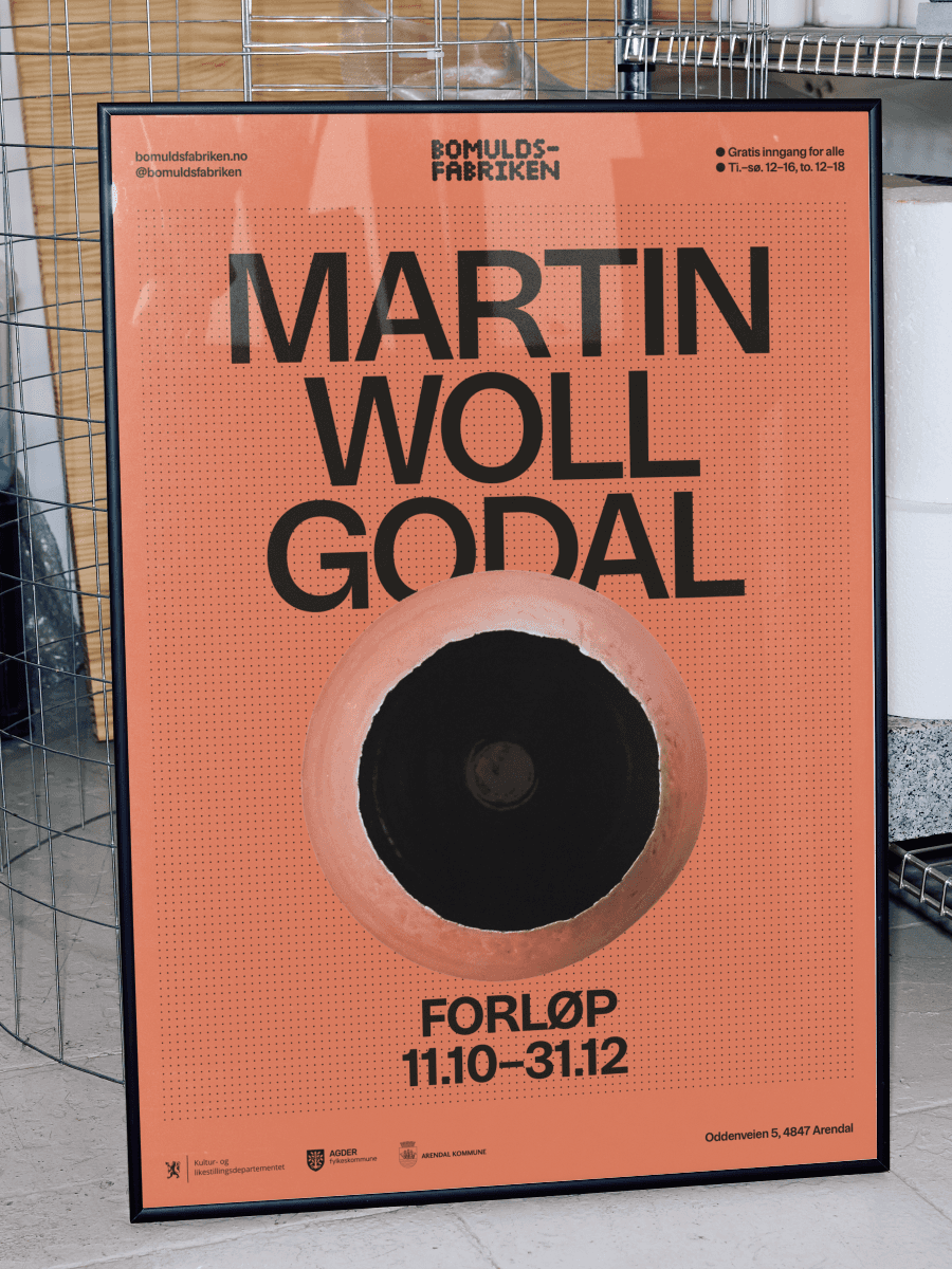 Rutemønsteret av hull er et enkelt prinsipp som gjør identiteten fleksibel. Den trer i bakgrunnen når kunsten har hovedrollen. Når Bomuldsfabriken selv står i fokus, er designet fargerikt, tydelig og lett gjenkjennelig.